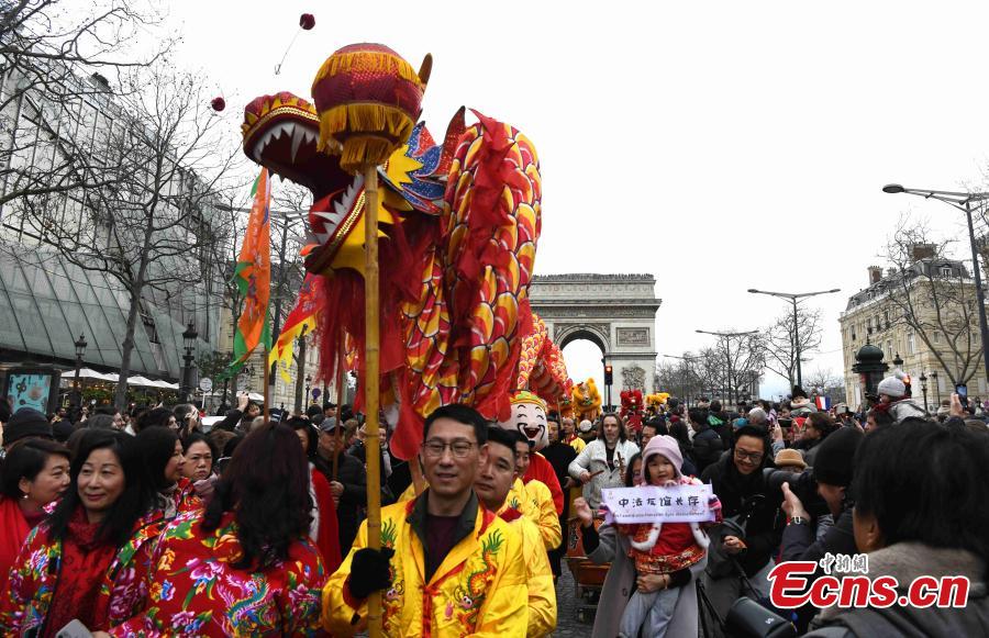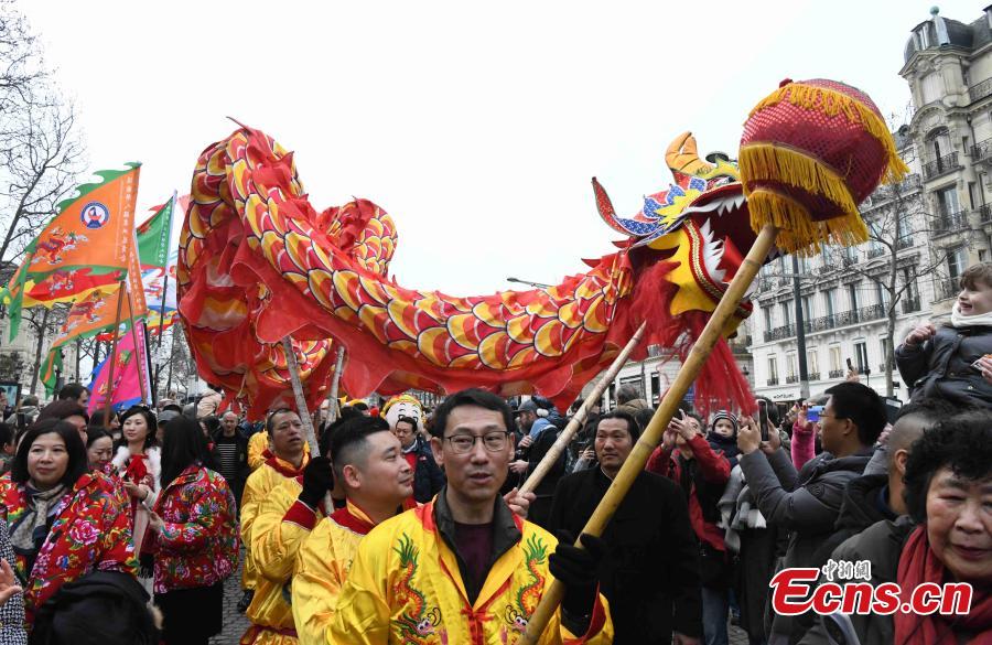 Dragon dance staged to celebrate Chinese New Year in Paris