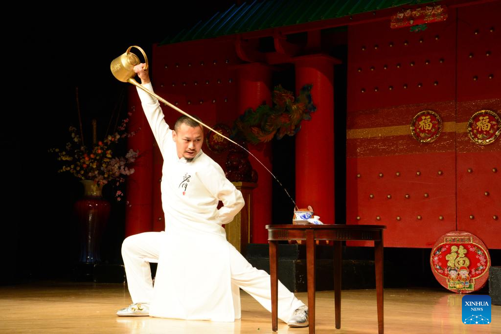 An artist from China's Chengdu City performs at the 34th Phoenix Chinese Week Culture and Cuisine Festival in Phoenix, Arizona, the United States, on Feb. 4, 2024. Over 20,000 local residents experienced the sights, sounds, and tastes of the 34th Phoenix Chinese Week Culture and Cuisine Festival this weekend in the capital city of Arizona. (Photo by Sui Xuguang/Xinhua)