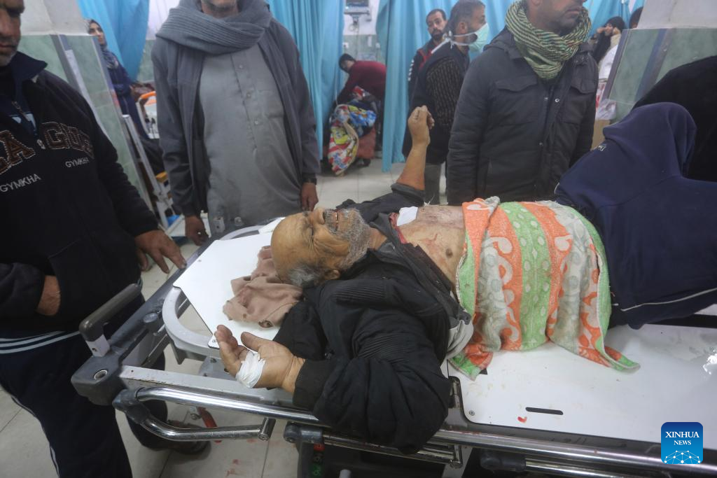 An injured man is seen at a hospital after an Israeli airstrike in the southern Gaza Strip city of Rafah, on Feb. 5, 2024. The death toll of Palestinians killed from Israeli strikes on the Gaza Strip has risen to 27,478, the Hamas-run Health Ministry said on Monday. (Photo by Khaled Omar/Xinhua)