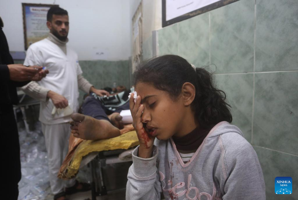 An injured girl is seen at a hospital after an Israeli airstrike in the southern Gaza Strip city of Rafah, on Feb. 5, 2024. The death toll of Palestinians killed from Israeli strikes on the Gaza Strip has risen to 27,478, the Hamas-run Health Ministry said on Monday. (Photo by Khaled Omar/Xinhua)