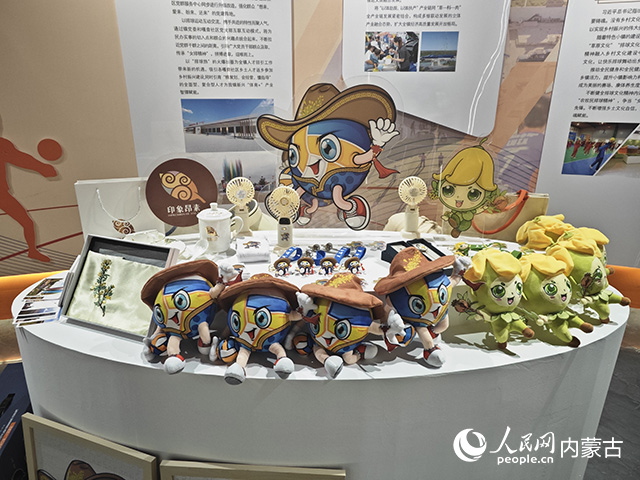Photo shows cultural and creative products inspired by volleyball on display at the volleyball culture exhibition hall in Angsu town, Ordos city, north China's Inner Mongolia Autonomous Region. (People's Daily Online/Miao Yang)