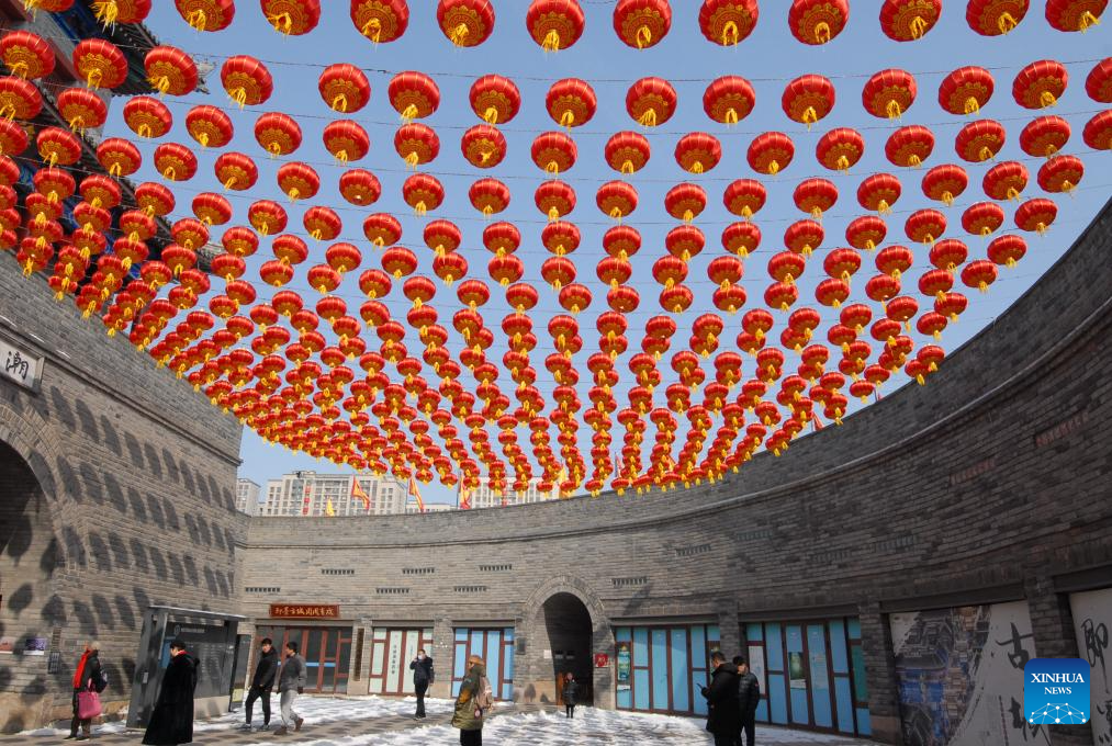 People visit the Jimo ancient town in Qingdao, east China's Shandong Province, Feb. 6, 2024. (Photo by Zhang Tao/Xinhua)