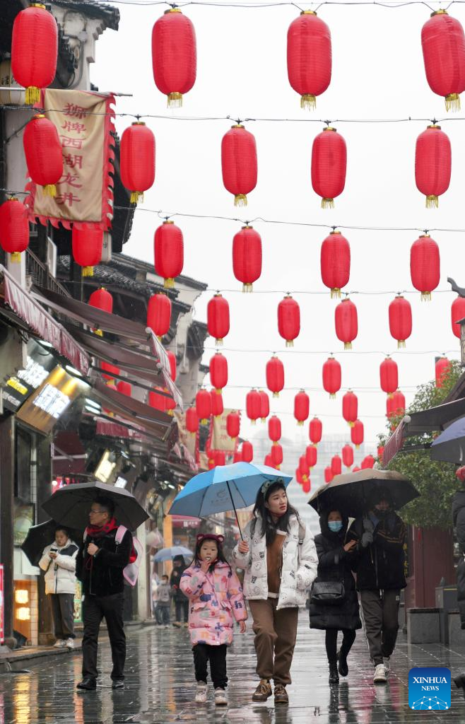 People visit the Hefang Street in Hangzhou, east China's Zhejiang Province, Feb. 6, 2024. (Xinhua/Han Chuanhao)