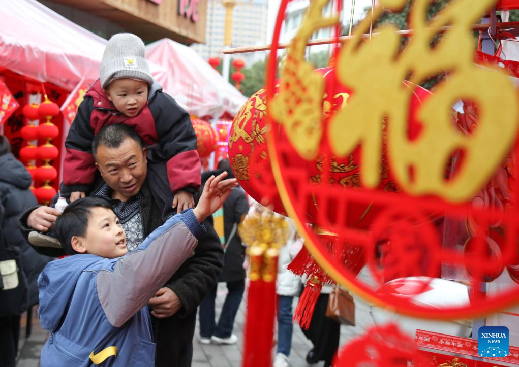 People shop for Spring festival decorations at a fair in Shibing County, southwest China's Guizhou Province, Feb. 5, 2024. (Photo by Mo Guibin/Xinhua)