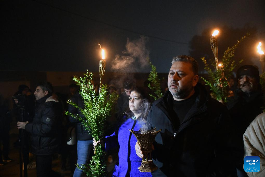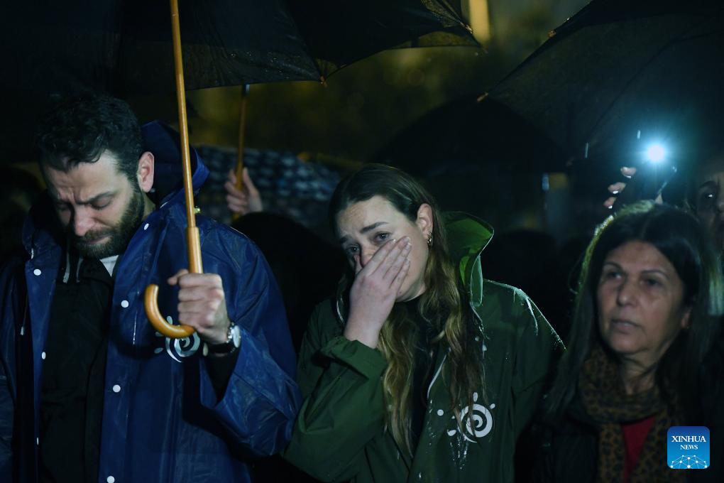People mourn victims of the earthquakes in Hatay, Türkiye, on Feb. 6, 2024. A year ago, Türkiye suffered the worst disaster in its modern history when twin earthquakes rocked its southern region, killing more than 53,000 people and displacing millions. (Photo by Mustafa Kaya/Xinhua)