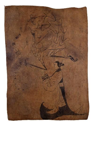 Silk painting featuring a female figure, loong, and fenghuang (Chinese phoenix) from the Warring States Period (475-221 B.C.), housed in Hunan Museum, Changsha, central China's Hunan Province. [Photo/Hunan Museum]
