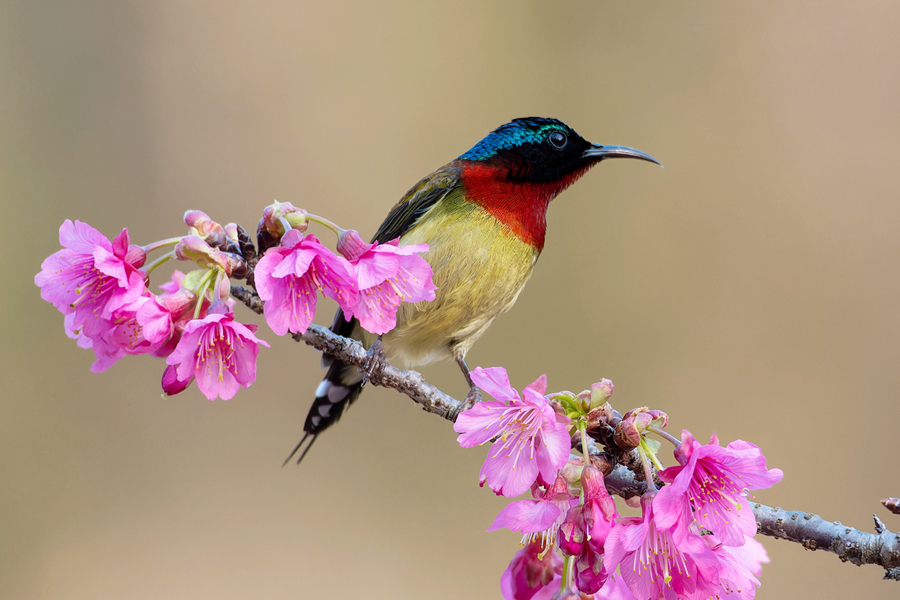 A male fork-tailed sunbird sits on a tree in Xiamen, southeast China's Fujian Province. (Photo/Zhou Longjie)