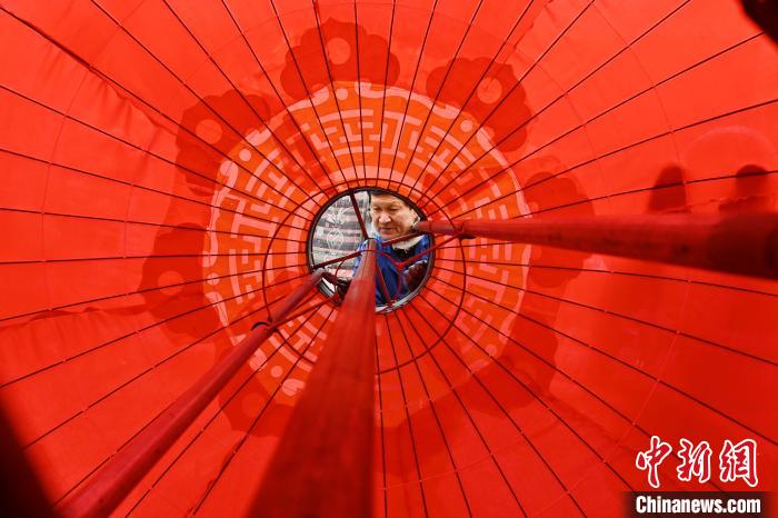 He meticulously ties and shapes each lantern by hand, using more than 40 steel wires as a sturdy framework for a lantern 3 meters in height.