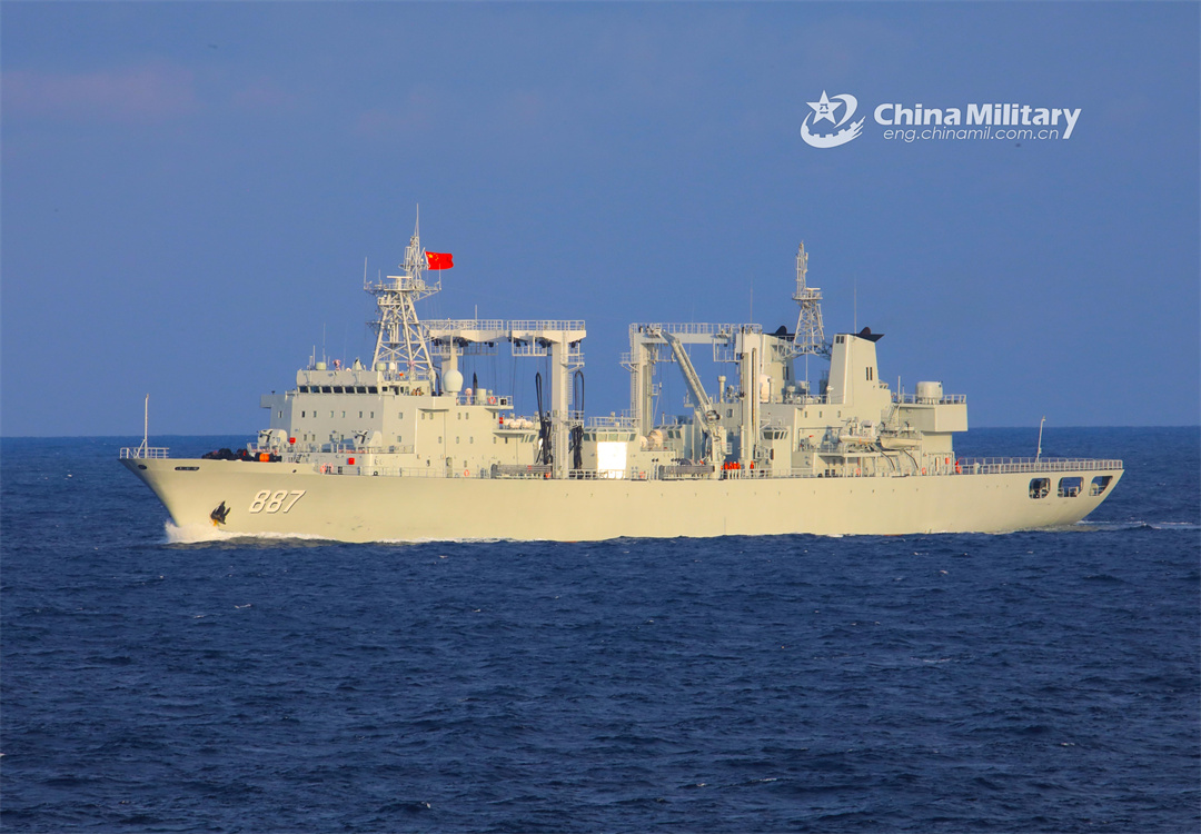 The comprehensive supply ship Weishanhu attached to a naval service ship group of the PLA Navysails on the sea during a recent maritime training exercise in the South China Sea. The exercise focused on the subjects ofsearch and rescue of the wounded, replenishment-at-sea, attack and defense operation, etc. (eng.chinamil.com.cn/Photo by Wu Huanqing)