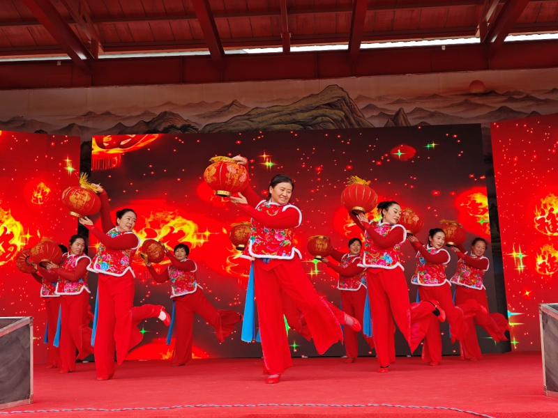Villagers dance with red lanterns in their hands during a "village gala" in Dalanzhai village, Dingluan township, Changyuan city, central China's Henan Province. (People's Daily Online/Wang Shaoshao)