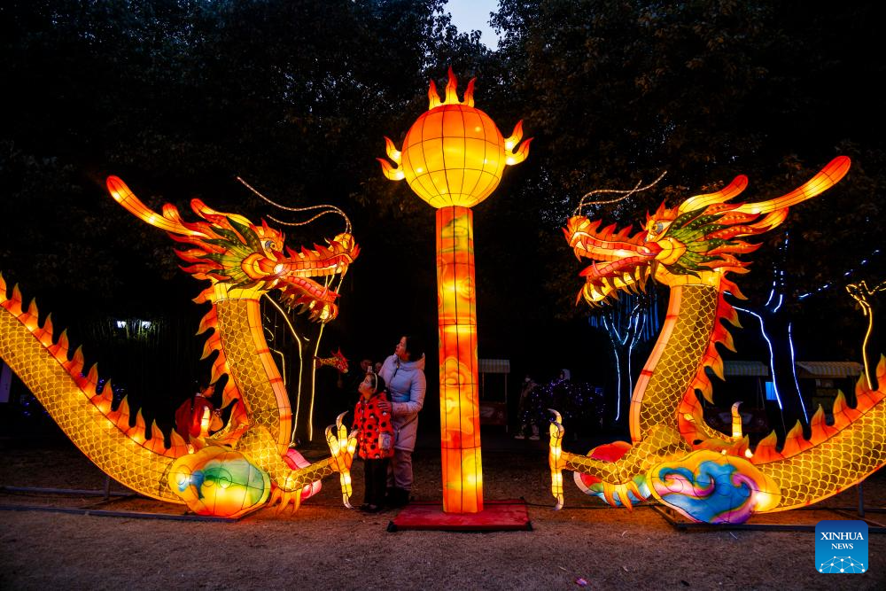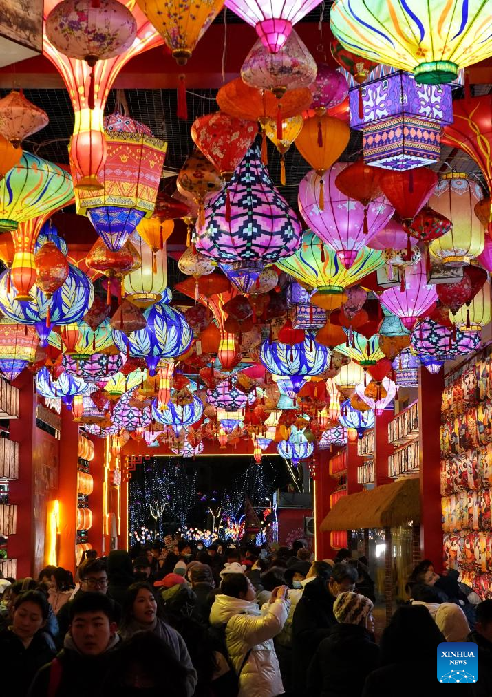 People visit a lantern show to celebrate the coming Spring Festival in Tancheng County, east China's Shandong Province, Feb. 7, 2024. Many Chinese cities are adorned with illuminated lanterns as Spring Festival is around the corner. (Photo by Zhang Chunlei/Xinhua)