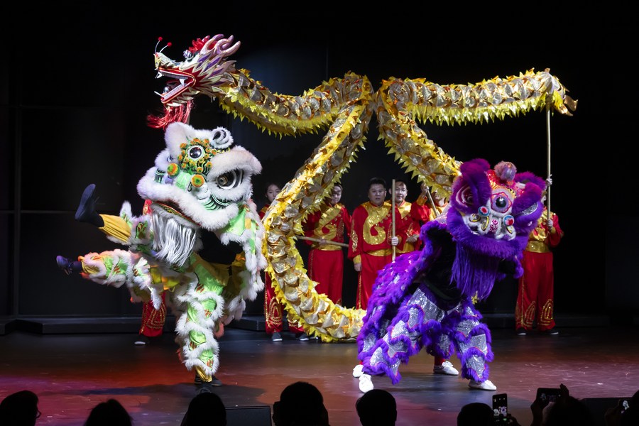 People stage dragon and lion dance performances during a celebration ahead of the Chinese Lunar New Year, or the Spring Festival, in Helsinki, Finland, on Feb. 5, 2024. (Photo by Matti Matikainen/Xinhua)