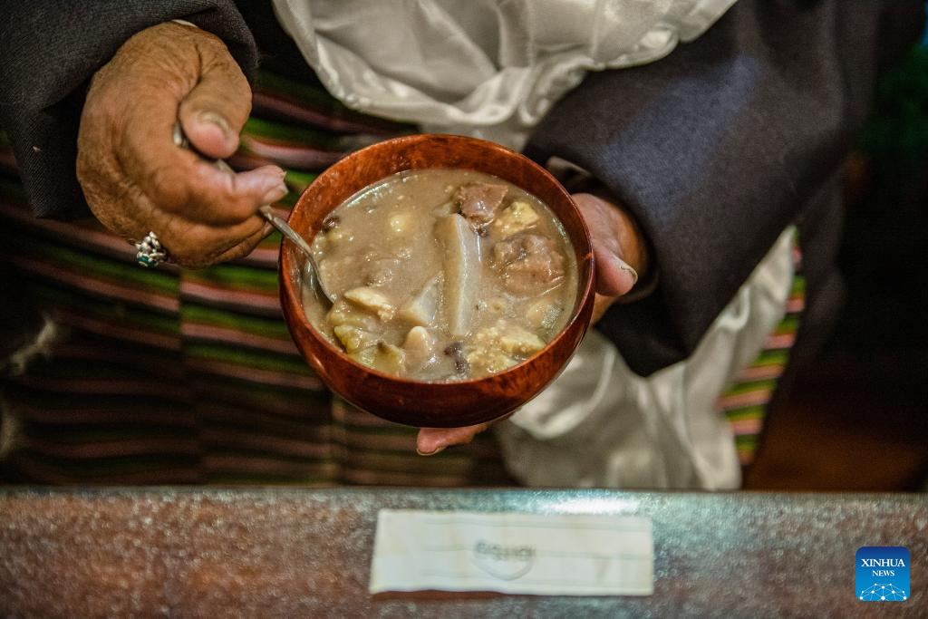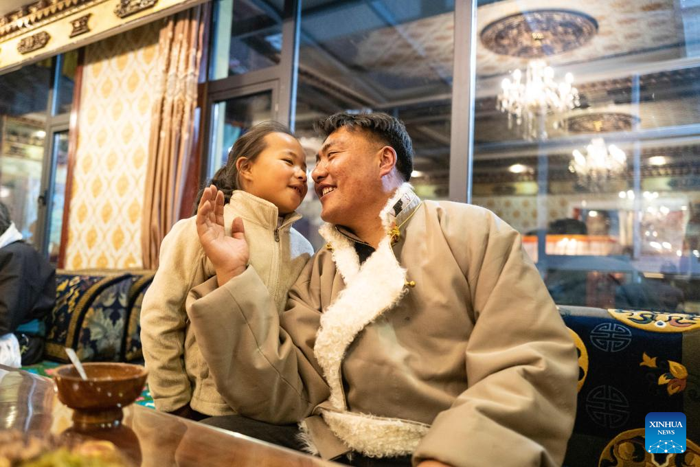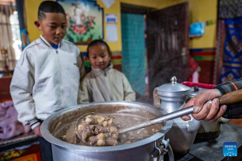As the festival approaches, the village is exuding a cheerful and festive atmosphere. Like other locals, family members of Sichod Wangmo also gathered at home and enjoyed the feast, looking forward to having better days in the upcoming year. (Xinhua/Sun Ruibo)