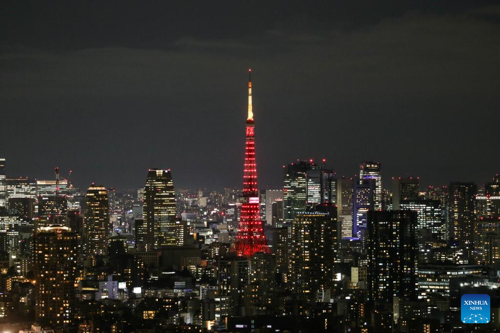 TOKYO, Feb. 9 (Xinhua) -- Japan's iconic landmark Tokyo Tower was illuminated in red on Friday to celebrate the Chinese Lunar New Year, an annual event that has been running since 2019 to promote cultural exchanges.