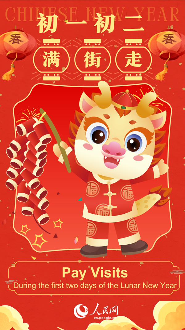 People usually exchange visits and good wishes with each other on the first two days of the Lunar New Year.