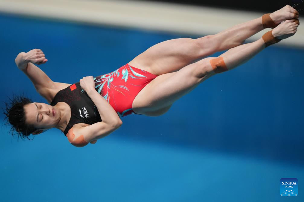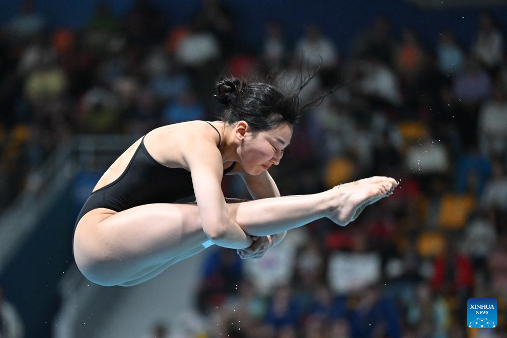 Chang Yani of China competes during the women's 3m springboard final of the World Aquatics Championships 2024 in Doha, Qatar on Feb. 9, 2024. (Xinhua/Xue Yuge)