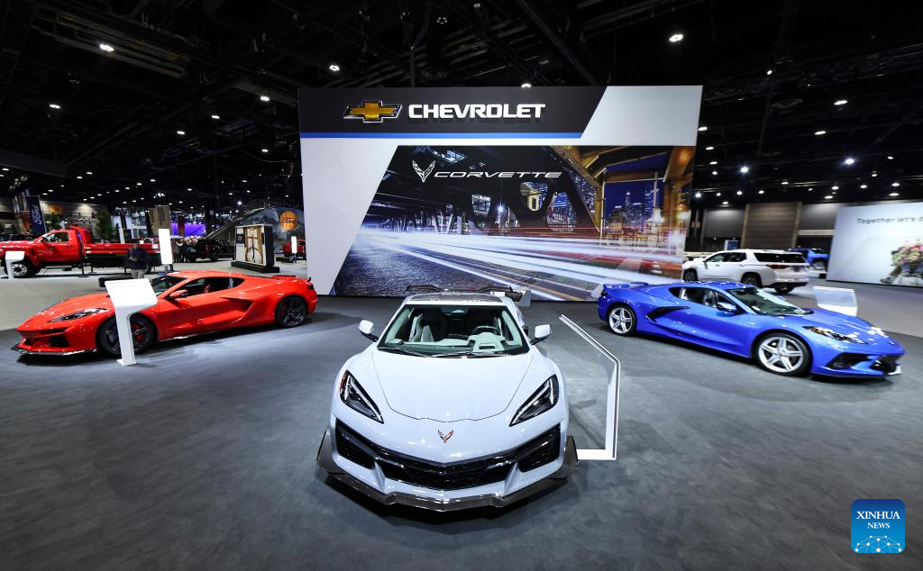This photo taken on Feb. 8, 2024 shows the Chevrolet Corvette lineup at the 2024 Chicago Auto Show at McCormick Place in Chicago, the United States. The 2024 Chicago Auto Show featuring 20-plus manufacturers from all over the world will last from Feb. 10 to 19. (Photo by Joel Lerner/Xinhua)