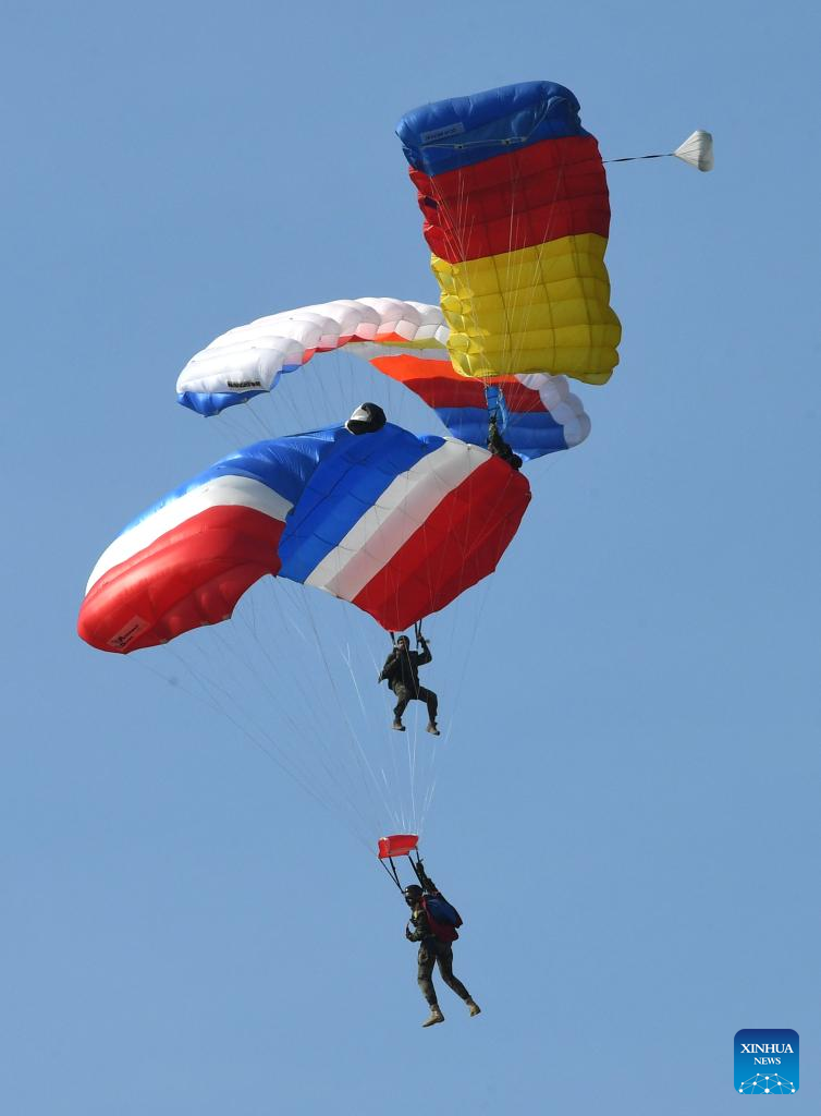 Parachuters are seen during a rally to celebrate the 45th anniversary of the victory of Iran's 1979 Islamic Revolution in Tehran, Iran, Feb. 11, 2024. (Xinhua/Shadati)