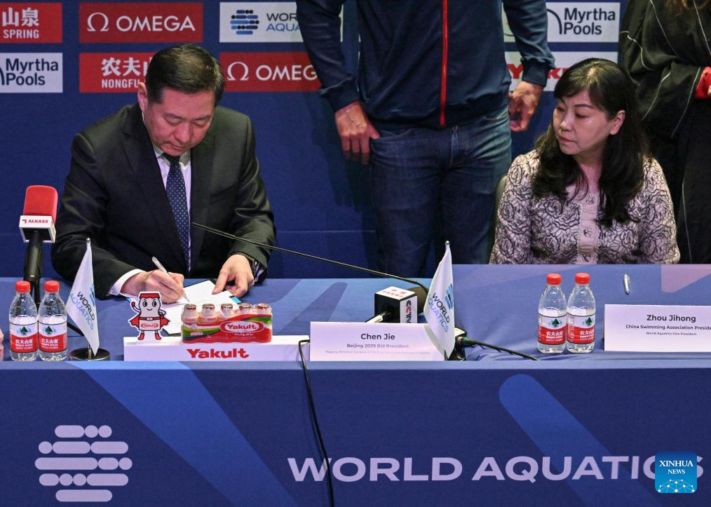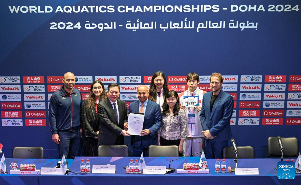 DOHA, Feb. 11 (Xinhua) -- World Aquatics confirmed on Sunday that the Chinese capital, Beijing, will host the World Aquatics Championships in 2029.