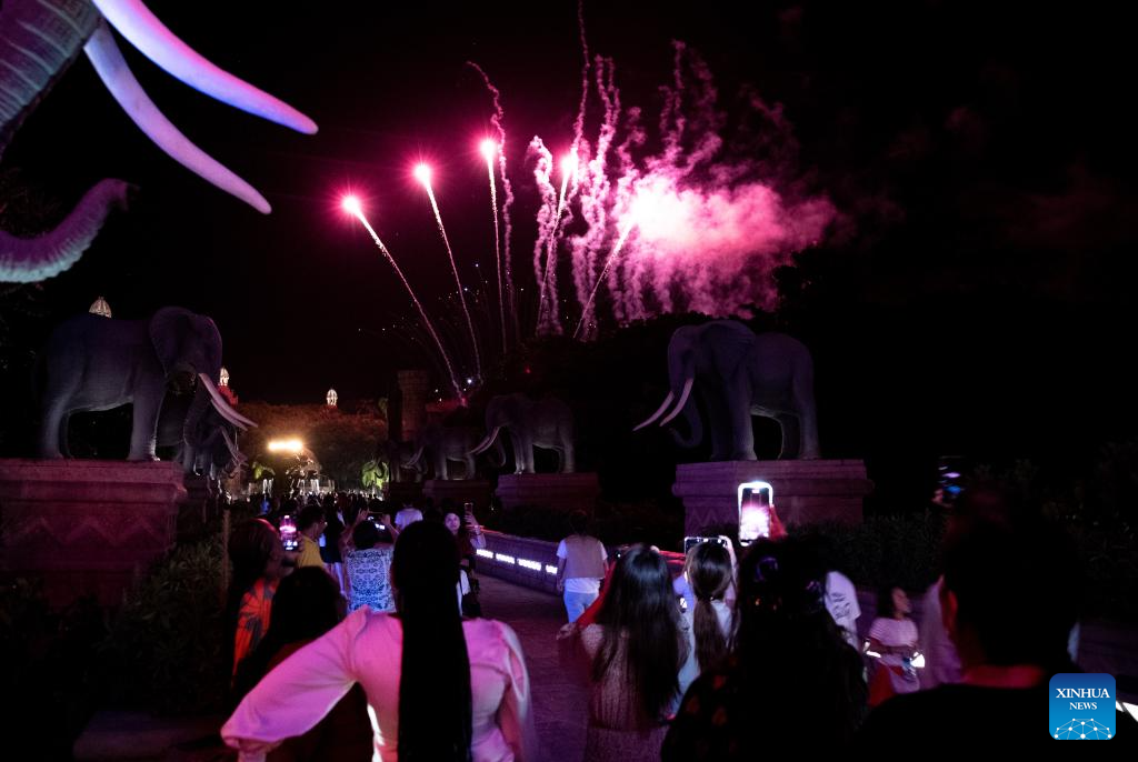 People watch fireworks celebrating the Chinese Lunar New Year in Sun City, North West Province, South Africa, Feb. 10, 2024. (Xinhua/Zhang Yudong)