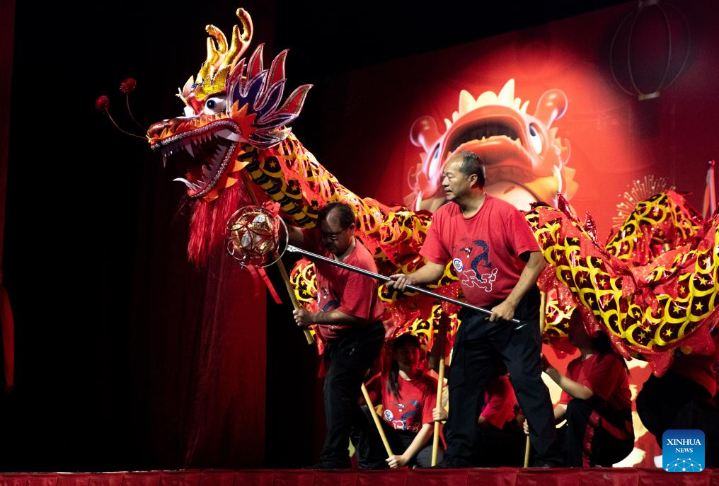 People perform a dragon dance to celebrate the Chinese Lunar New Year in Sun City, North West Province, South Africa, Feb. 10, 2024. (Xinhua/Zhang Yudong)