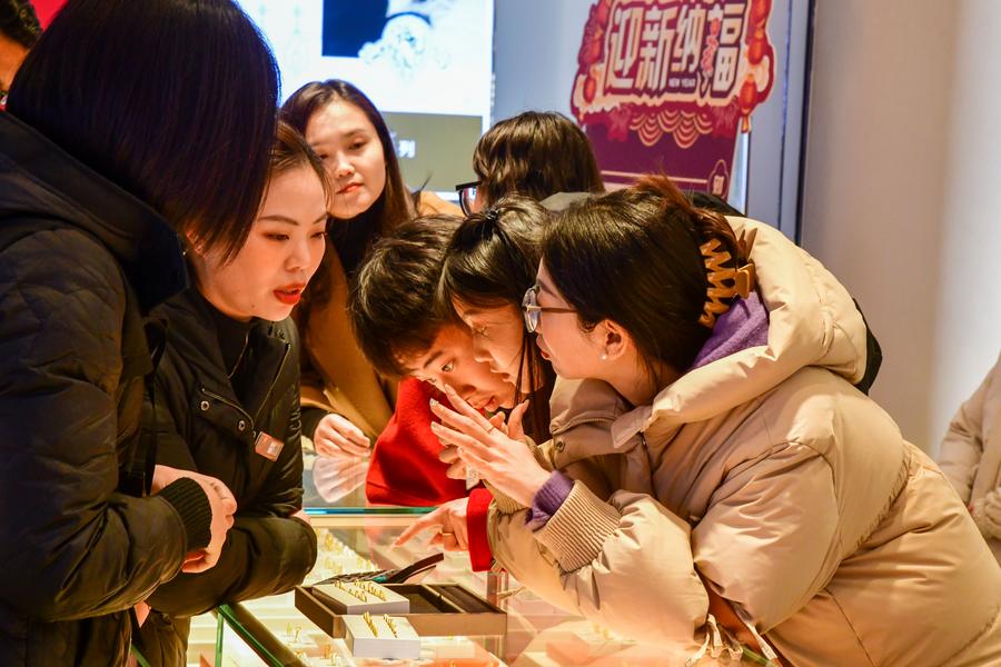 Ahead of the Spring Festival holiday, gold shops in the country have seen a large flow of consumers, many of whom are young people.