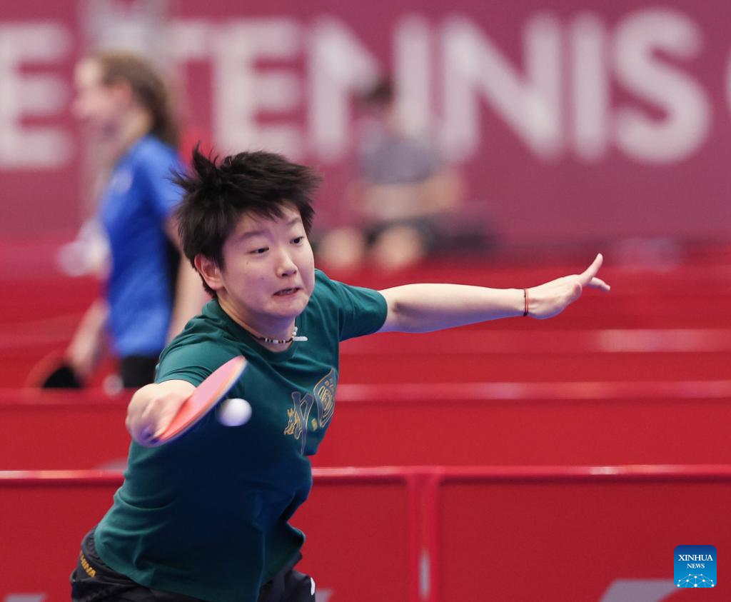 Team China's player Sun Yingsha attends a training session ahead of the ITTF World Team Table Tennis Championships Finals 2024 in Busan, South Korea, Feb. 15, 2024. The event will be staged here from Feb. 16 to 25. (Xinhua/Yao Qilin)