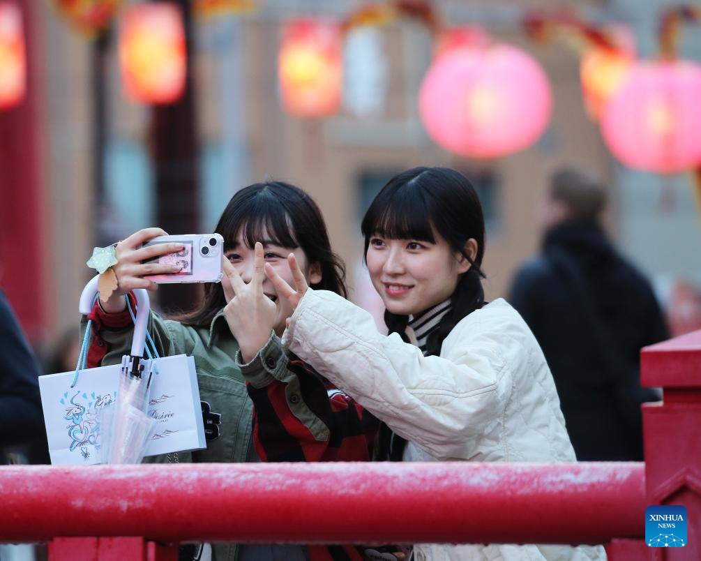 Visitors take photos at a lantern festival celebrating the Chinese New Year in Nagasaki, Japan, Feb. 14, 2024. (Xinhua/Yang Guang)