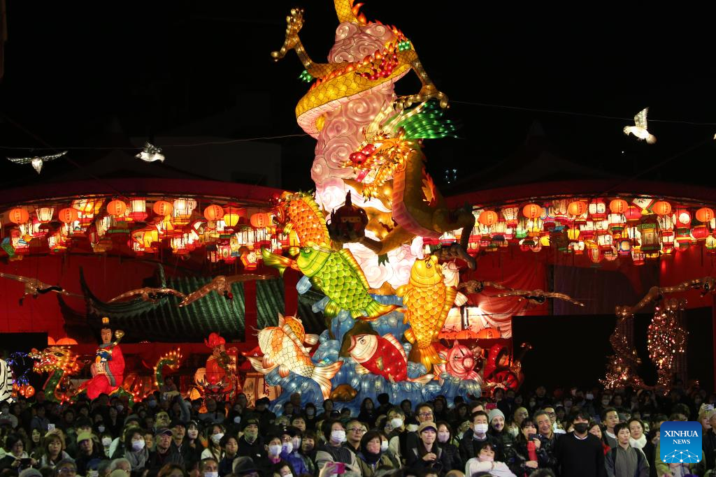 People visit a lantern festival celebrating the Chinese New Year in Nagasaki, Japan, Feb. 14, 2024. (Xinhua/Yang Guang)
