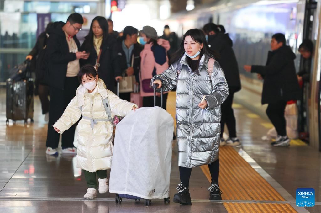 Passengers arrive at Beijing South Railway Station in Beijing, capital of China, Feb. 17, 2024. (Xinhua/Xing Guangli)
