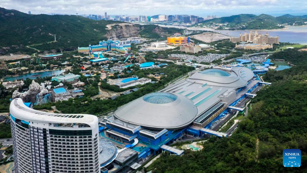 An aerial drone photo taken on Sept. 12, 2023 shows a view of the Chimelong Ocean Kingdom in Hengqin of Zhuhai, south China's Guangdong Province. (Xinhua/Liu Dawei)