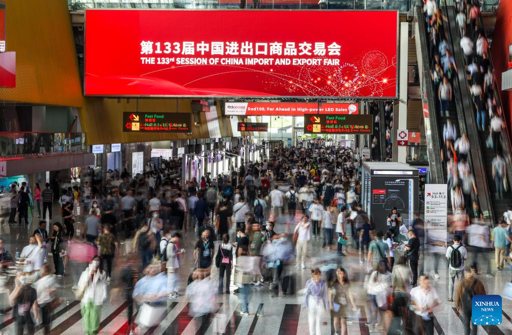 This photo taken on April 15, 2023 shows a scene at the 133th session of the China Import and Export Fair in Guangzhou, south China's Guangdong Province. (Xinhua/Liu Dawei)