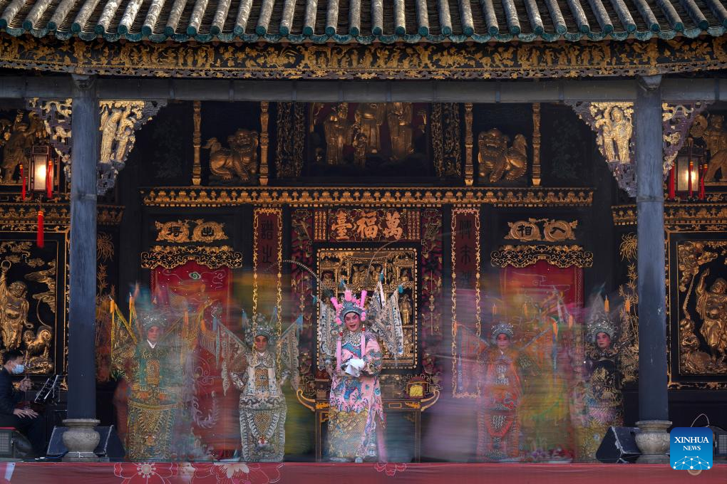 Artists perform traditional Cantonese opera in Foshan, south China's Guangdong Province, Jan. 19, 2023. (Photo by Tang Dongtao/Xinhua)