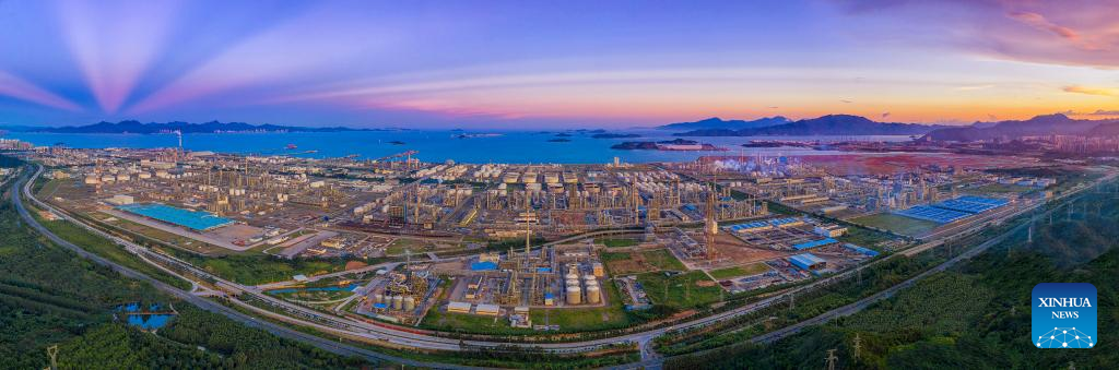 An aerial panoramic drone photo taken on Sept. 2, 2021 shows a view of the Dayawan petrochemical industrial zone in Huizhou, south China's Guangdong Province. (Photo by Wang Jianqiao/Xinhua)