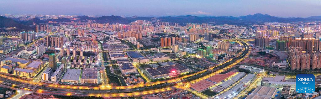An aerial panoramic drone photo taken on May 15, 2021 shows a view of Huizhou Zhongkai Hi-tech Industrial Development Zone in Huizhou, south China's Guangdong Province. (Photo by Wang Jianqiao/Xinhua)
