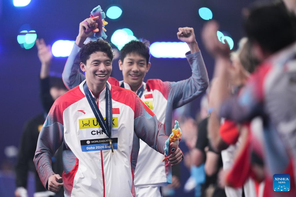 DOHA, Feb. 16 (Xinhua) -- China celebrated a second consecutive day of comeback relay victory at the World Aquatics Championships on Friday.