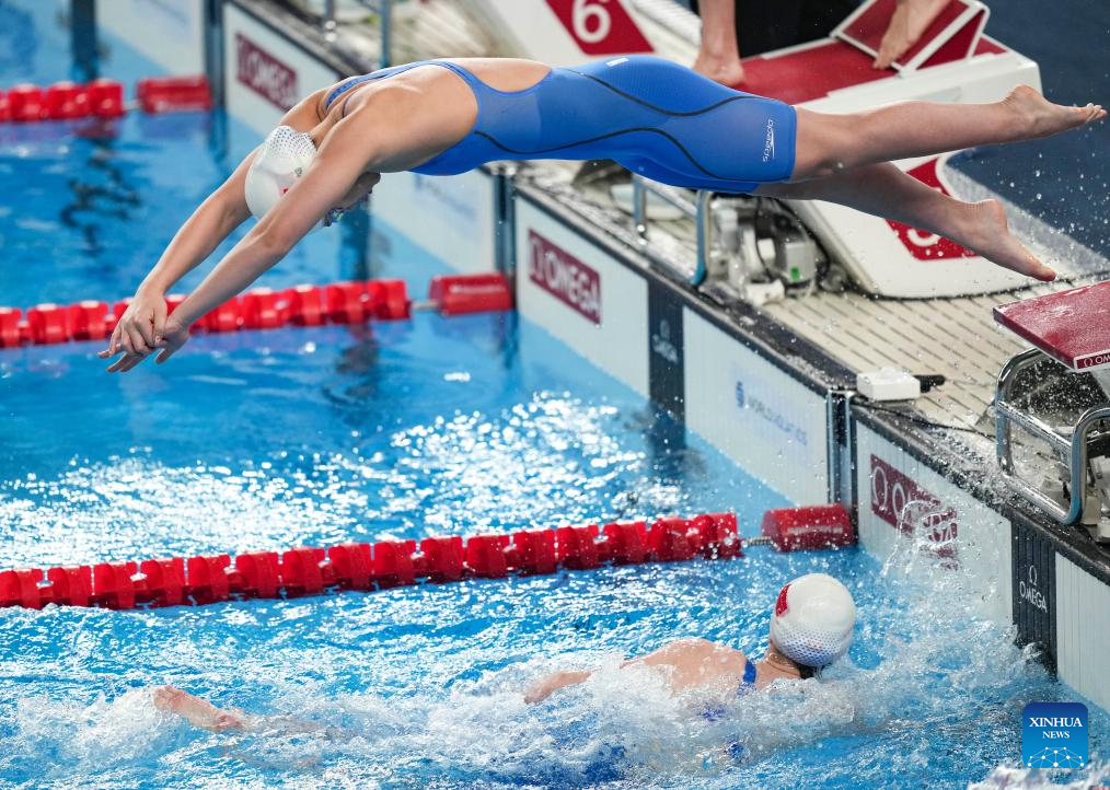 Sarah Sjoestroem of Sweden competes during the women's 50m butterfly final of swimming event at the World Aquatics Championships 2024 in Doha, Qatar, Feb. 17, 2024. (Xinhua/Xia Yifang)
