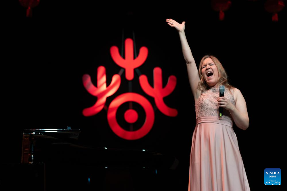 An actress performs during a concert themed "Happy Chinese New Year" in Hesperange, Luxembourg, Feb. 17, 2024. (Xinhua/Meng Dingbo)
