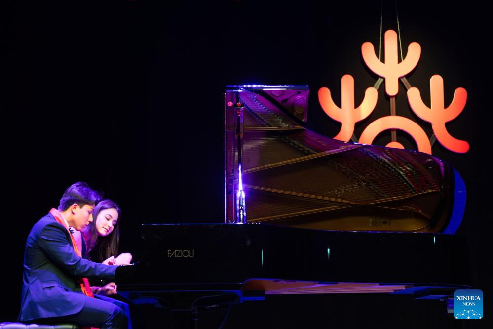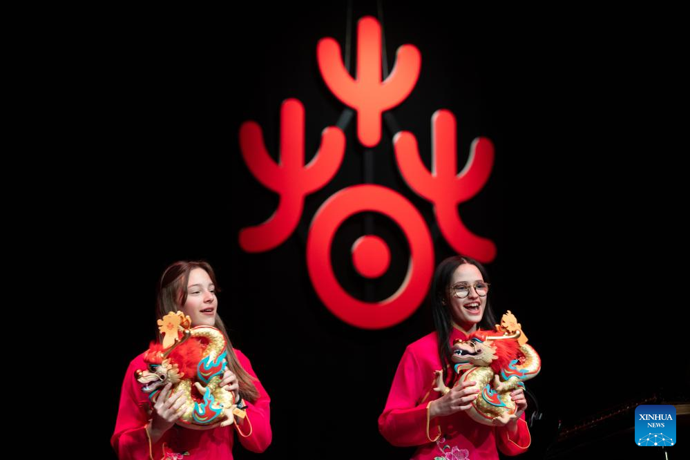 Local students perform during a concert themed "Happy Chinese New Year" in Hesperange, Luxembourg, Feb. 17, 2024. (Xinhua/Meng Dingbo)