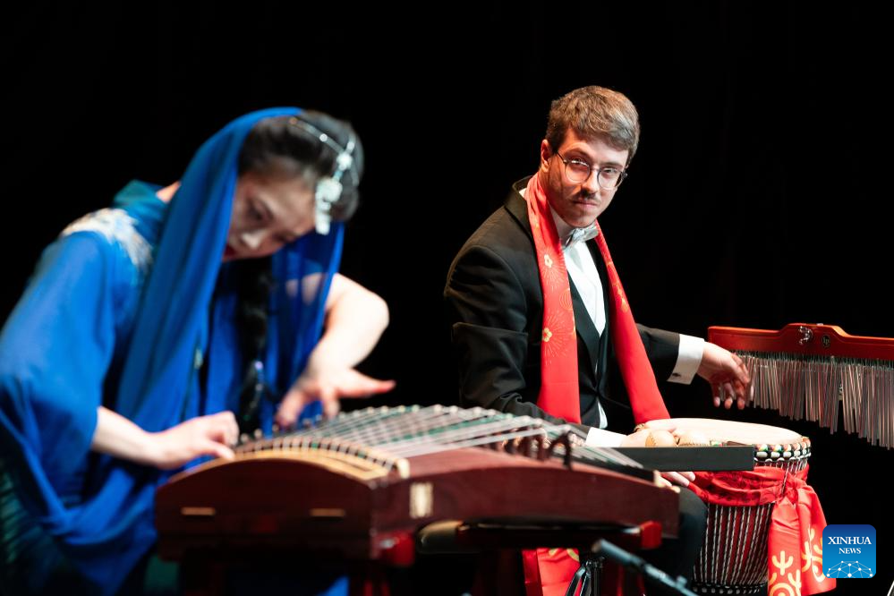 Artists perform during a concert themed "Happy Chinese New Year" in Hesperange, Luxembourg, Feb. 17, 2024. (Xinhua/Meng Dingbo)