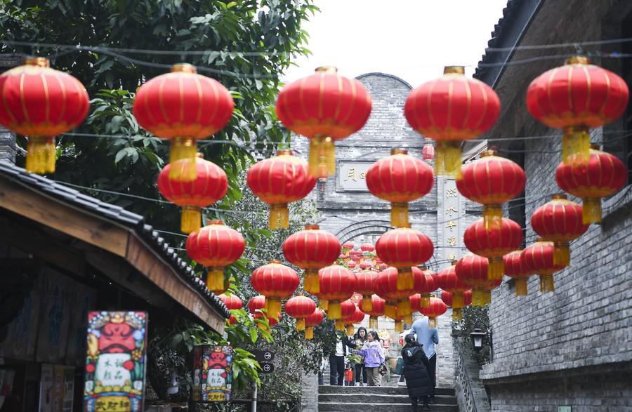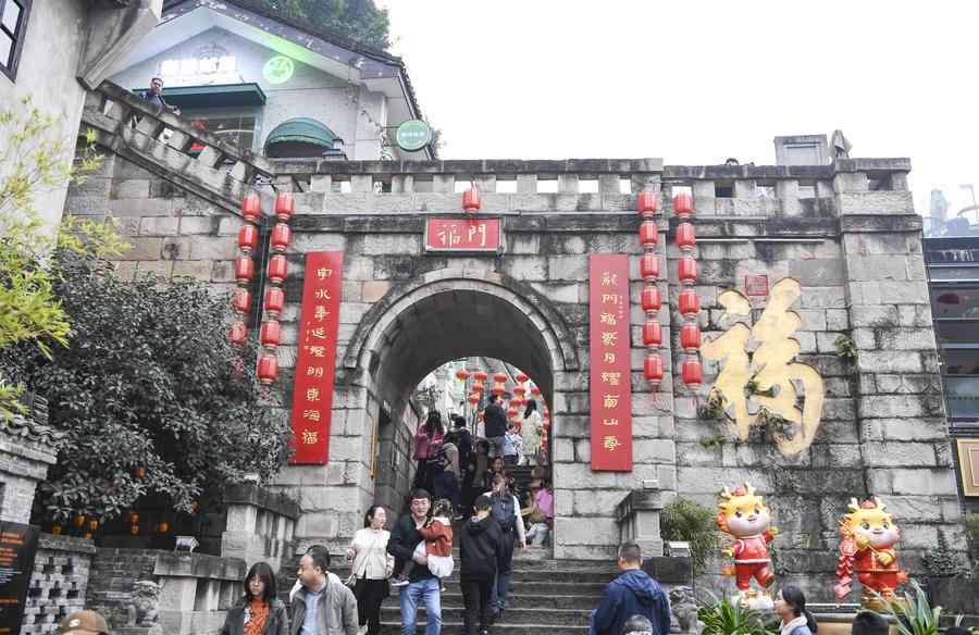 People visit Longmenhao old street in Nan'an District of southwest China's Chongqing Municipality, Feb. 14, 2024. (Xinhua/Wang Quanchao)