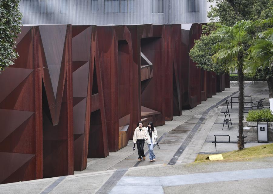 People visit a cultural industrial park in Liangjiang New Area, southwest China's Chongqing Municipality, Feb. 15, 2024. (Xinhua/Wang Quanchao)