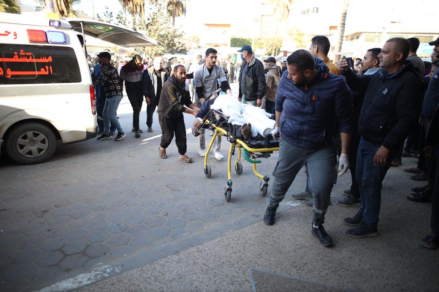 An injured man is transferred to a hospital in central Gaza Strip city of Deir el-Balah, on Feb. 17, 2024. (Xinhua)