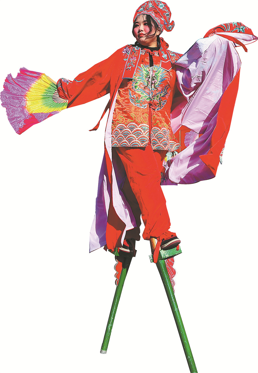 An performer walks on stilts at the Taoist Dongyue Temple fair in Beijing. [JIANG DONG/CHINA DAILY]