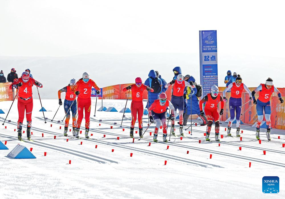 Athletes start during the women's team relay final of cross country event in Ulanqab, north China's Inner Mongolia Autonomous Region, Feb. 19, 2024. (Xinhua/Zhang Chenlin)