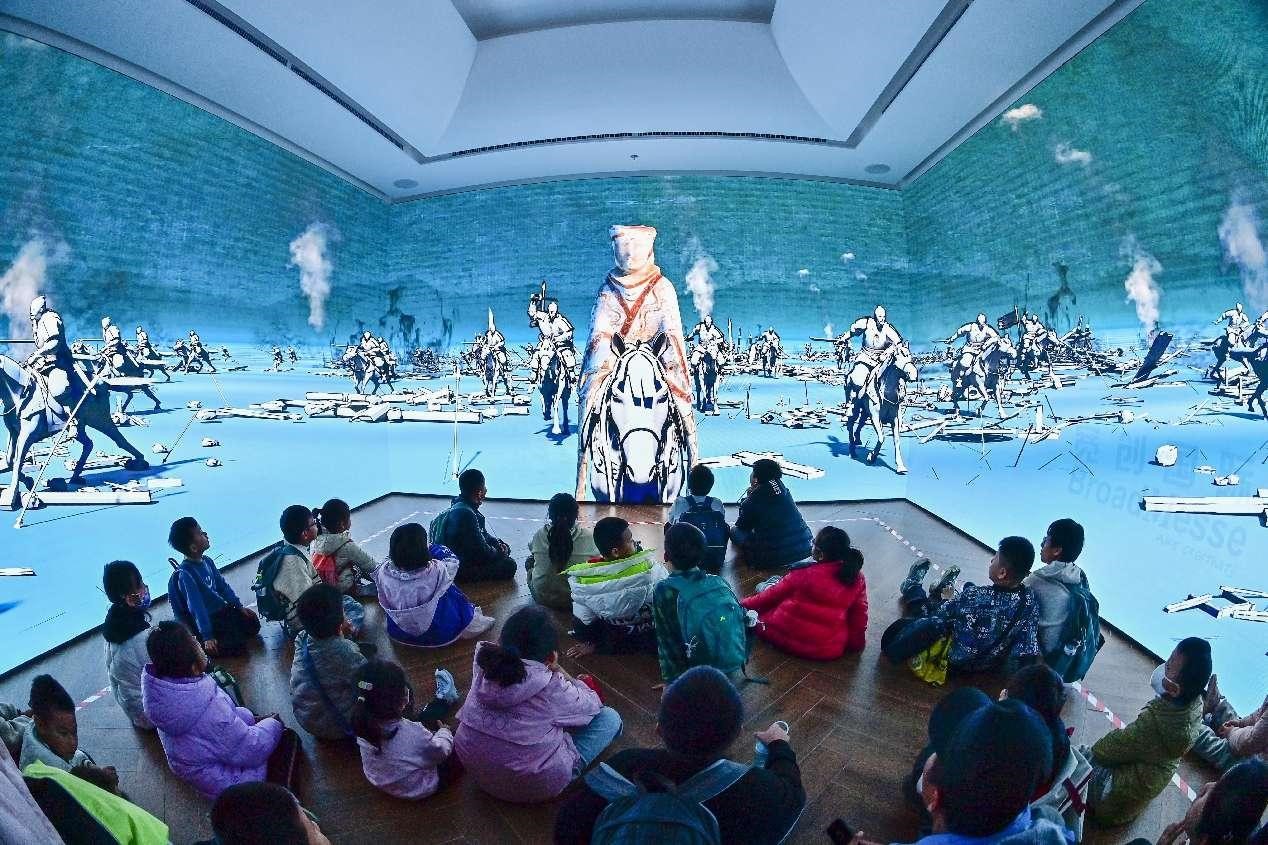 People visit an immersive experience hall at the West Lake Museum in Hangzhou, east China's Zhejiang province. (People's Daily Online/Long Wei)
