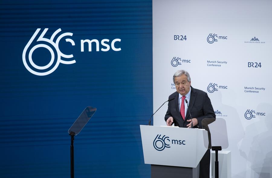 United Nations Secretary-General Antonio Guterres speaks during the opening of the 60th Munich Security Conference (MSC) in Munich, Germany, Feb. 16, 2024. (Xinhua/Zhang Fan)