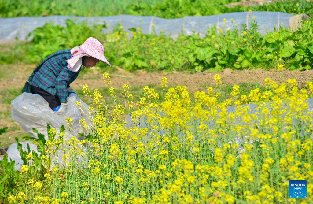 A farmer works in fields in Zaimen Village, Guandong Township, Congjiang County of southwest China's Guizhou Province, Feb. 19, 2024. Farmers across China are busy with agricultural production as the day of Yushui (Rain Water), the second of the 24 solar terms in the Chinese lunar calendar, came on Monday this year. (Photo by Lu Zhongnan/Xinhua)