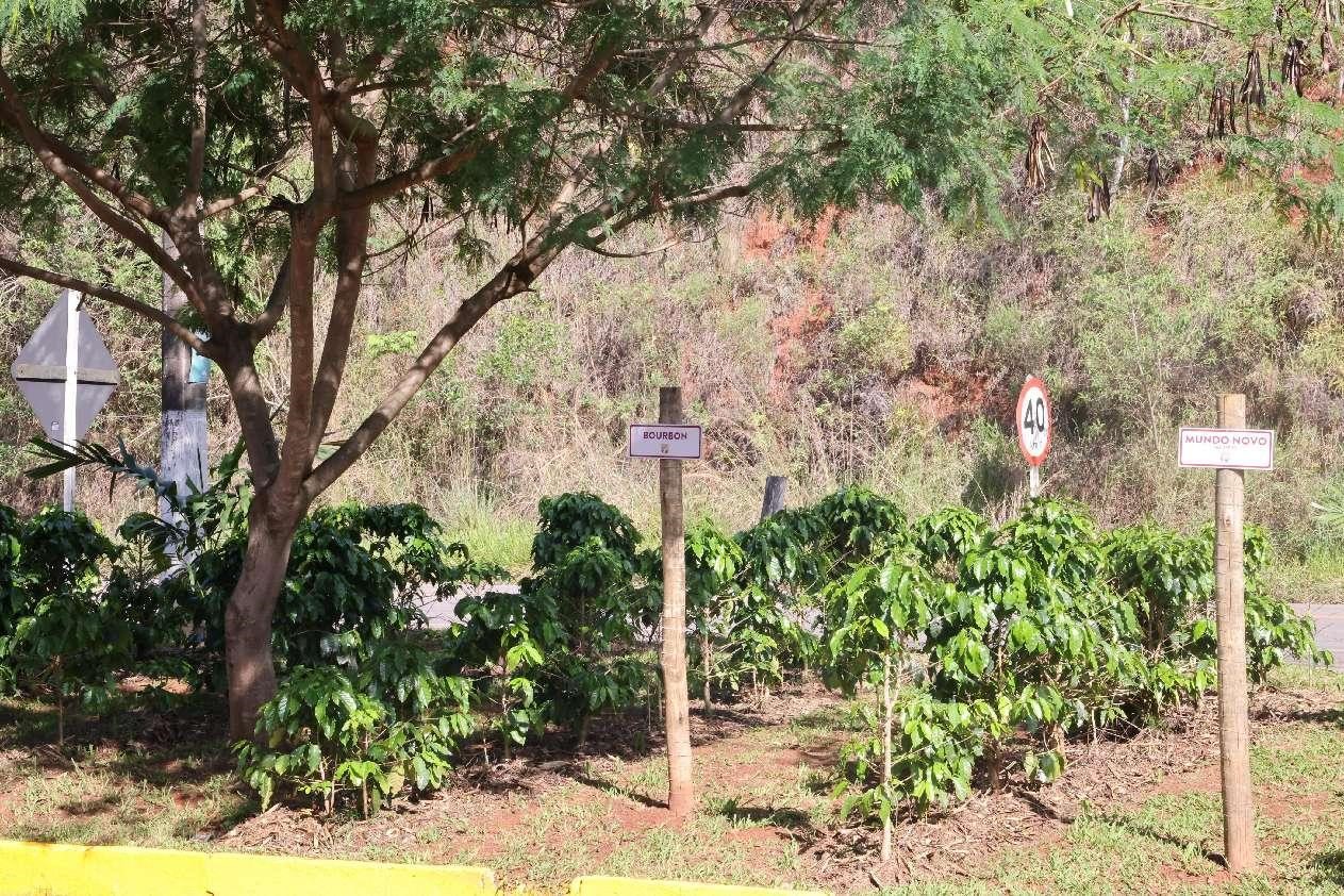 Photo shows coffee trees of different varieties outside the office of Unique Cafes in Brazil.? (People's Daily/Shi Yuanhao)