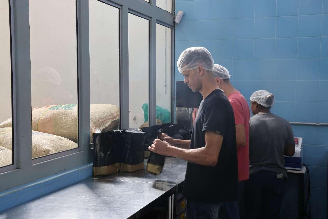 An employee of a coffee company packs coffee powder. (People's Daily/Shi Yuanhao)